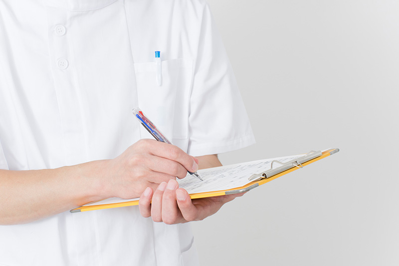 問診票をお渡ししますので痛みの症状やきっかけなどをご記入ください。